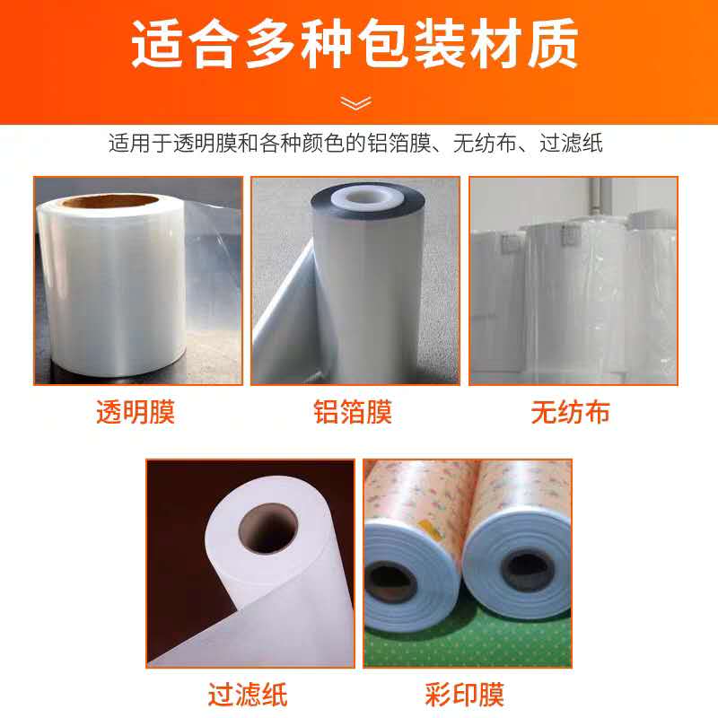 適應包材:紙、BOPP、鋁箔、滌綸/鍍鋁/、尼龍/、無紡布、濾紙等復合材料